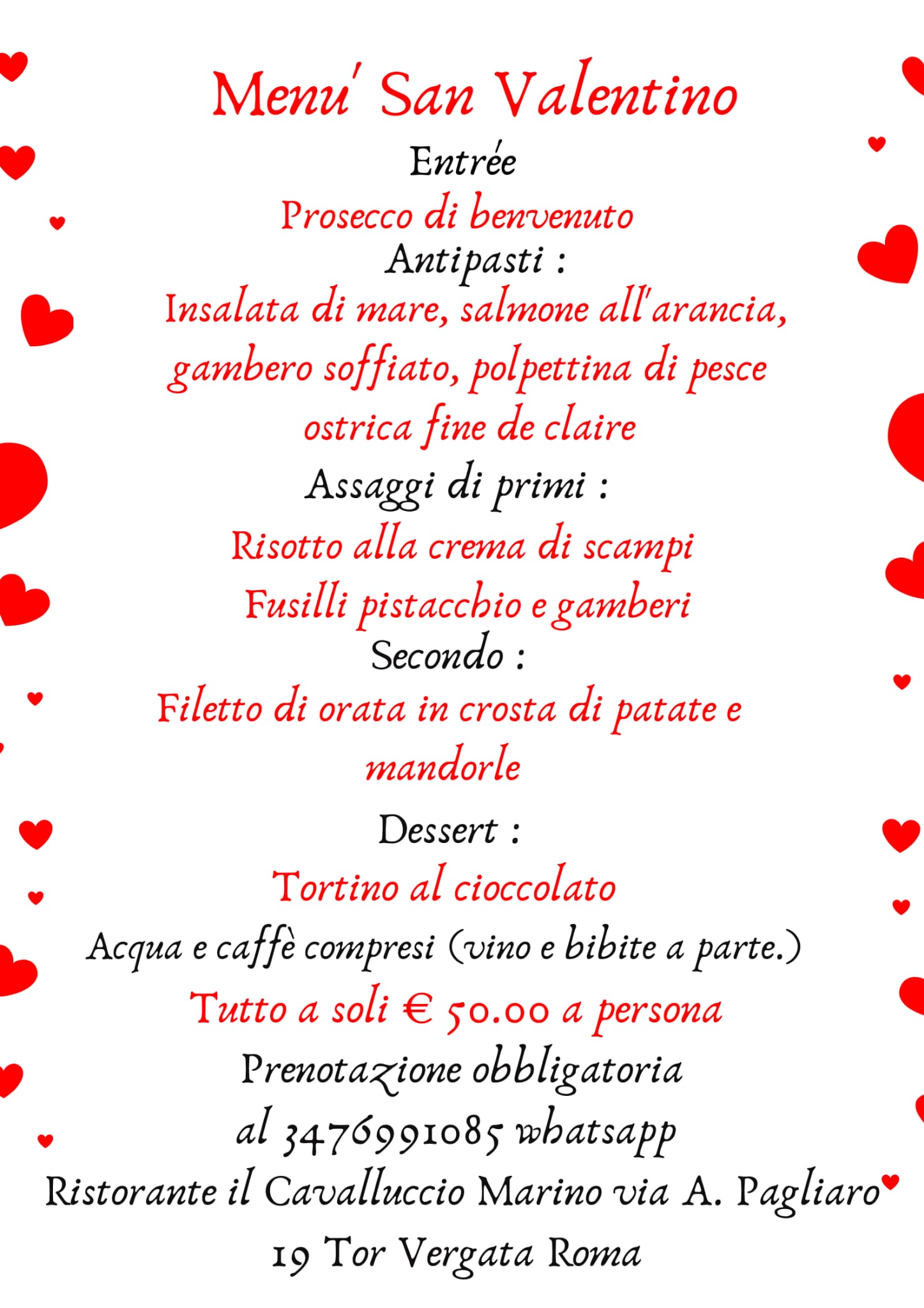 Dalla passione per la cucica mediterranea ereditata dalle origini salernitane, nasce il Ristorante Il Cavalluccio Marino, punto di riferimento della zona Tor vergata e non. Fondamentale l’esperienza acquisita dal titolare e chef Vincenzo Rinaldi presso ristoranti sia di origine sarda che campana, che hanno fatto in modo di far esprimere con amore e massimo impegno le sue innumerevoli ricette creando piatti decorati, belli da vedere e da gustare, nonchè piatti particolari come crudità di pesce con tutto ciò che il mare ci dona tutto il giorno come ostriche, tartufi, fasolari, cannolicchi, ricci, scampi, gamberi e carpacci vari di tonno, pesce spada, spigola, calamari e seppie.